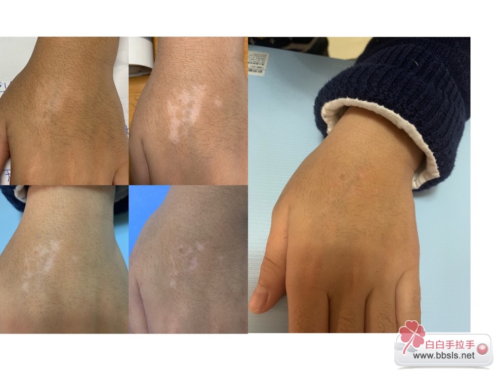 去年9月22号发现孩子手背变白当时精神面临崩溃,过完十一去三甲确诊开始了治疗,治疗初期加了手拉手没走弯路,开始最简单的治疗坚持不要总换药,孩子12岁一天两次美能一次两片,两次维生素E一次一片,两次葡萄酸锌钙口服液一次一支,一瓶脾氨肽口服冻干粉,在一月份开始照光,买的单管UVB,进口308本地没有,即使有一般家庭也承担不起,所以我选了在家自己给孩子照!现在孩子快痊愈了,给其他家长点信心,不放弃坚持!